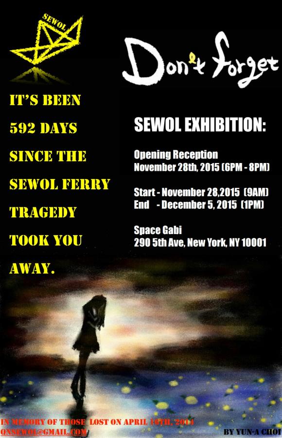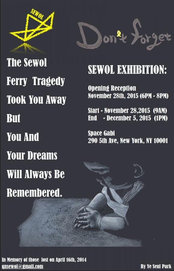세월호의 진실은 아직도 밝혀지지 않고 있다. 이번 전시회는 뉴욕의 한 카페에서 11월 28일부터 12월 5일까지 진행한다. 전시회의 초대글과 장소시간은 아래와 같이 참조하시길 바라며 많은 사람들의 참여를 바란다고 준비측은 밝혔다.