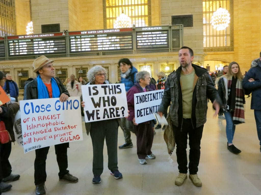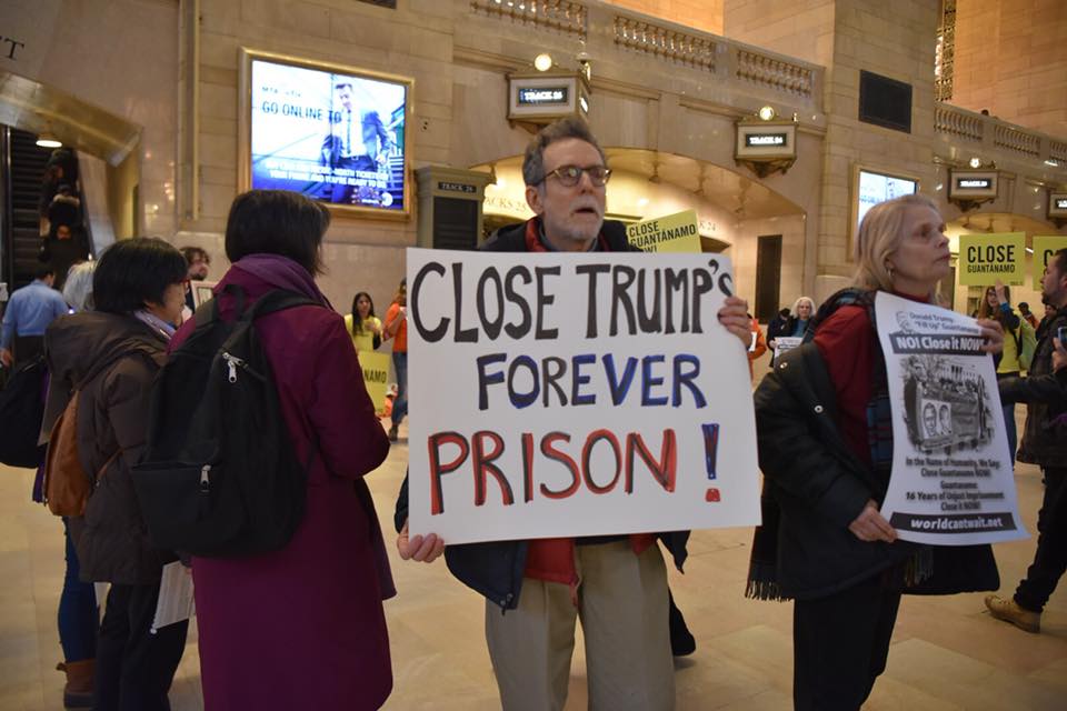 On Thursday, Feb. 1, human rights activists from Witness Against Torture, the Justice for Muslims Collective, World Can’t Wait, the Center for Constitutional Rights and other groups gathered at Grand Central Station to protest Trump’s recent Executive Order on Guantanamo. Announced in the State of the Union address, the Order directs that the detention camp remain open, reversing the policy of President Obama to try to close the prison.