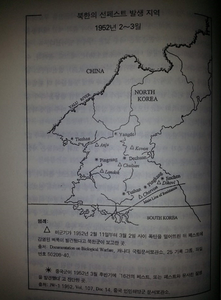 한국전쟁 중이던 1952년 2월 말, 조선인민공화국 외교부장 박헌영과 중국 총리 겸 외교부장 저우언라이는 미국이 한국에서 생물학전을 벌였다고 비난한 사실이 있다. 1952년 2월 말부터 3월 사이 중국군 병사 16명이 페스트 진단을 받았다. 압록강 인근 만주의 한 마을에서는 50명이 페스트에 걸려 36명이 사망했고, 4월에는 44건의 뇌염과 수막염이 보고되었다. 평양 인근에서는 5명이 콜레라에 걸려 3명이 목숨을 잃기도 했다.